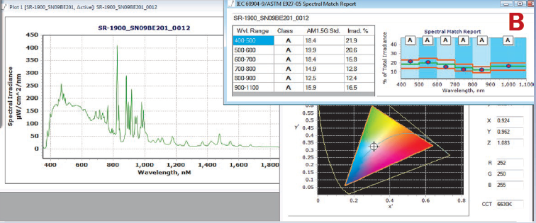 根据IEC60904-9/ASTM E927-05,SR-1900用于对连续太阳模拟器进行分类。